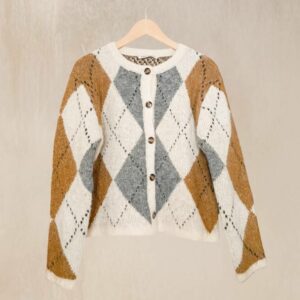 NEW – CARDIGAN ROMBOS MOSTAZA Y GRIS