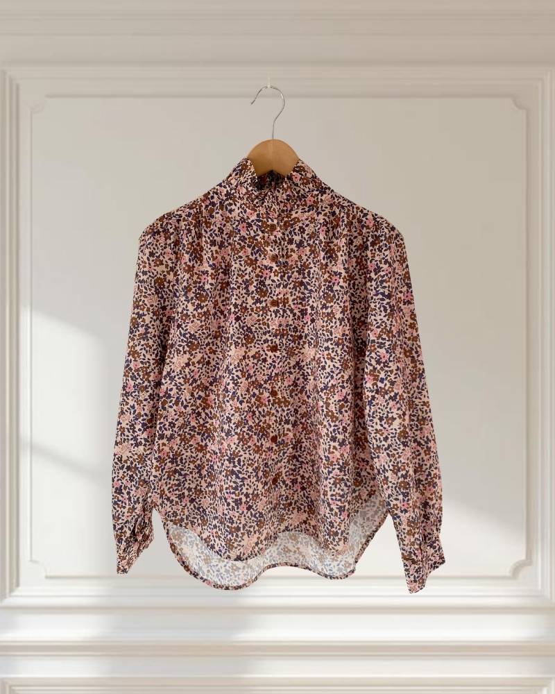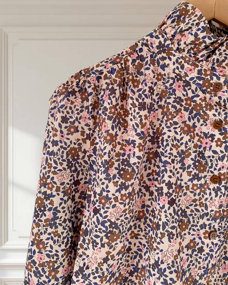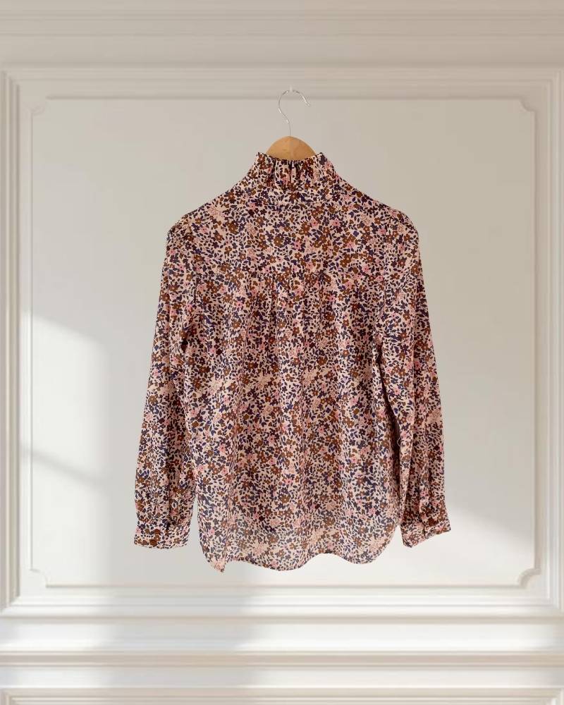 Blusa estampada con flores. Color beige y azul marino.