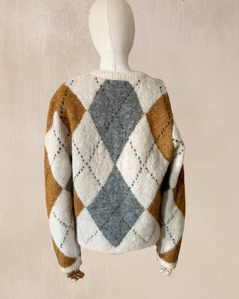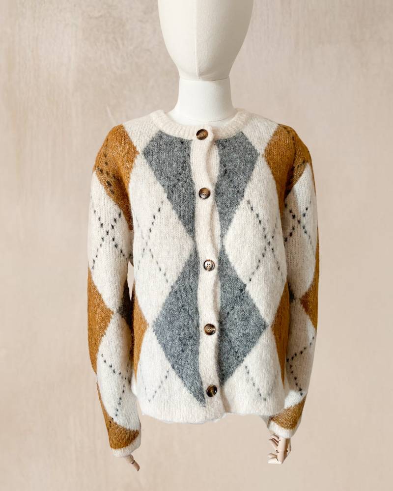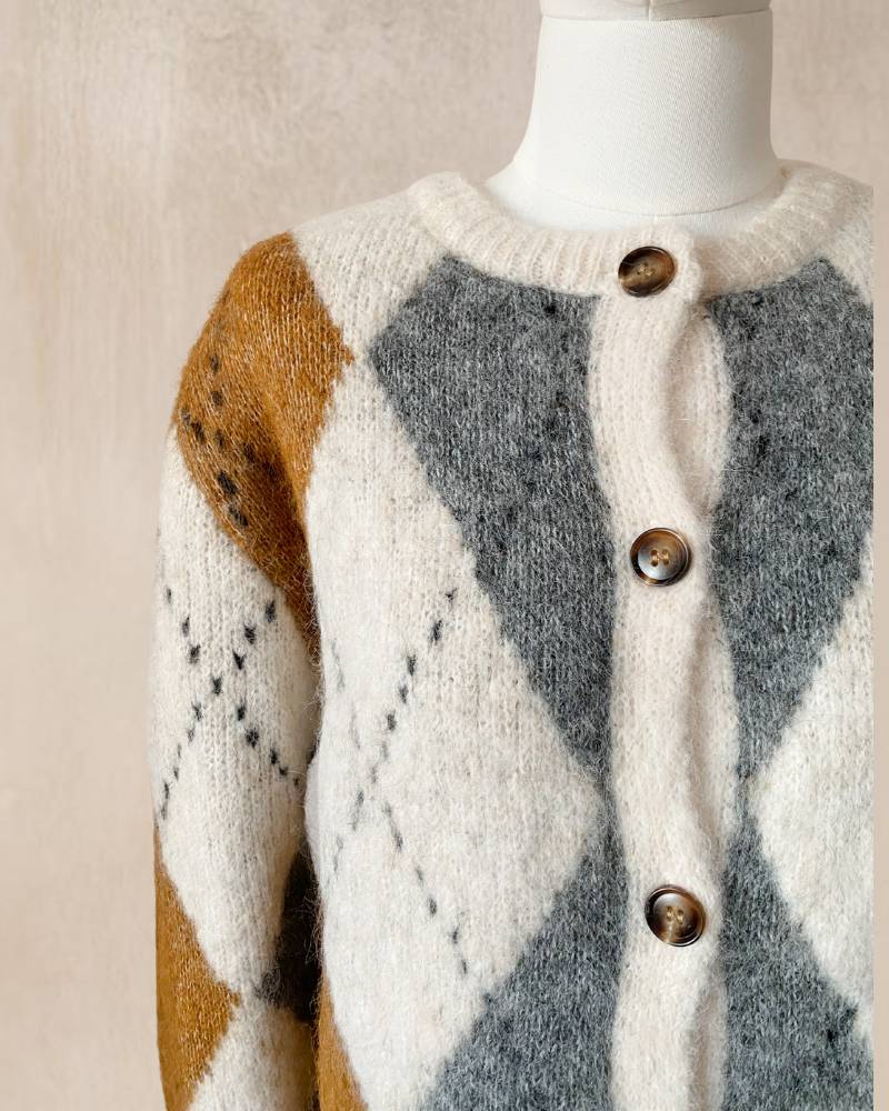 NEW – CARDIGAN ROMBOS MOSTAZA Y GRIS