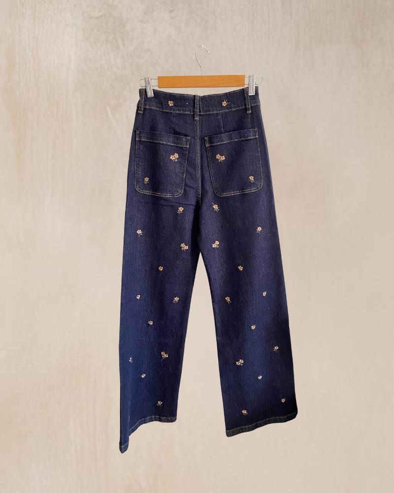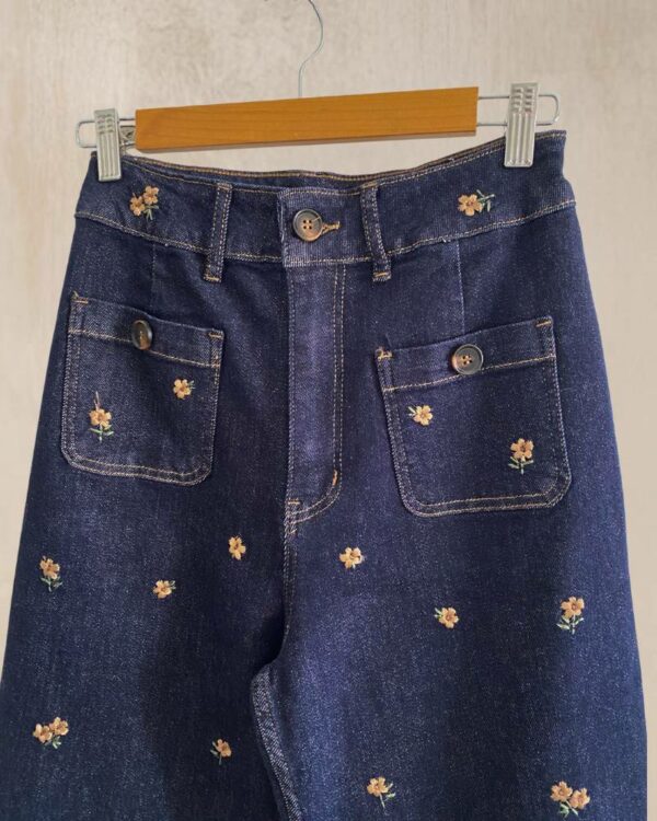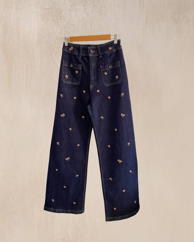 Vaqueros rectos con bordado. Color azul.