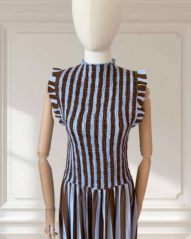 Vestido de rayas. Color azul y marrón.